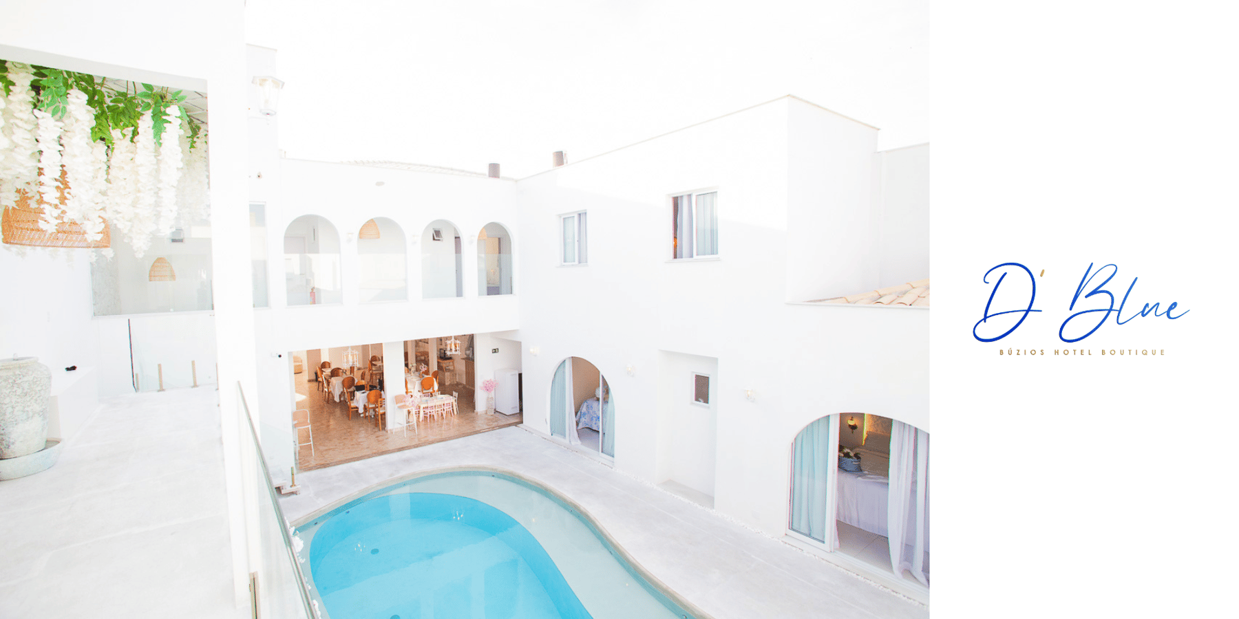 Somos um grupo de hospedagem que reúne o Hotel D`Blue, com toda a sua estrutura e conforto, e a Casa D Búzios ,um espaço exclusivo e aconchegante para momentos especiais.