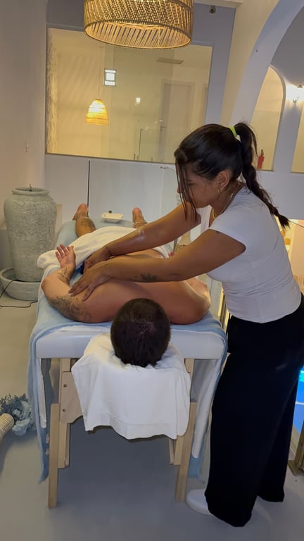Oferecemos uma massagem relaxante com pedras quentes, perfeita para aliviar as tensões e renovar as energias. Com duração de 30 minutos, pode ser aproveitada individualmente ou em casal, um convite para desacelerar e se conectar consigo mesmo… ou com quem você ama.