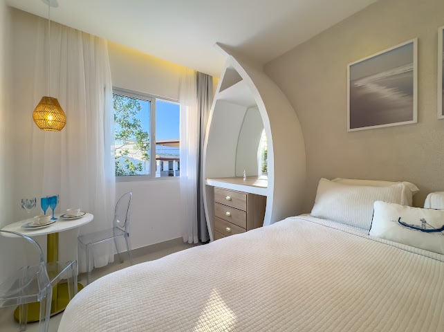 Localizada no segundo andar do hotel, essa suíte foi feita para casais que buscam tranquilidade e momentos especiais a dois. Com uma cama de casal super confortável, TV e banheiro aconchegante.